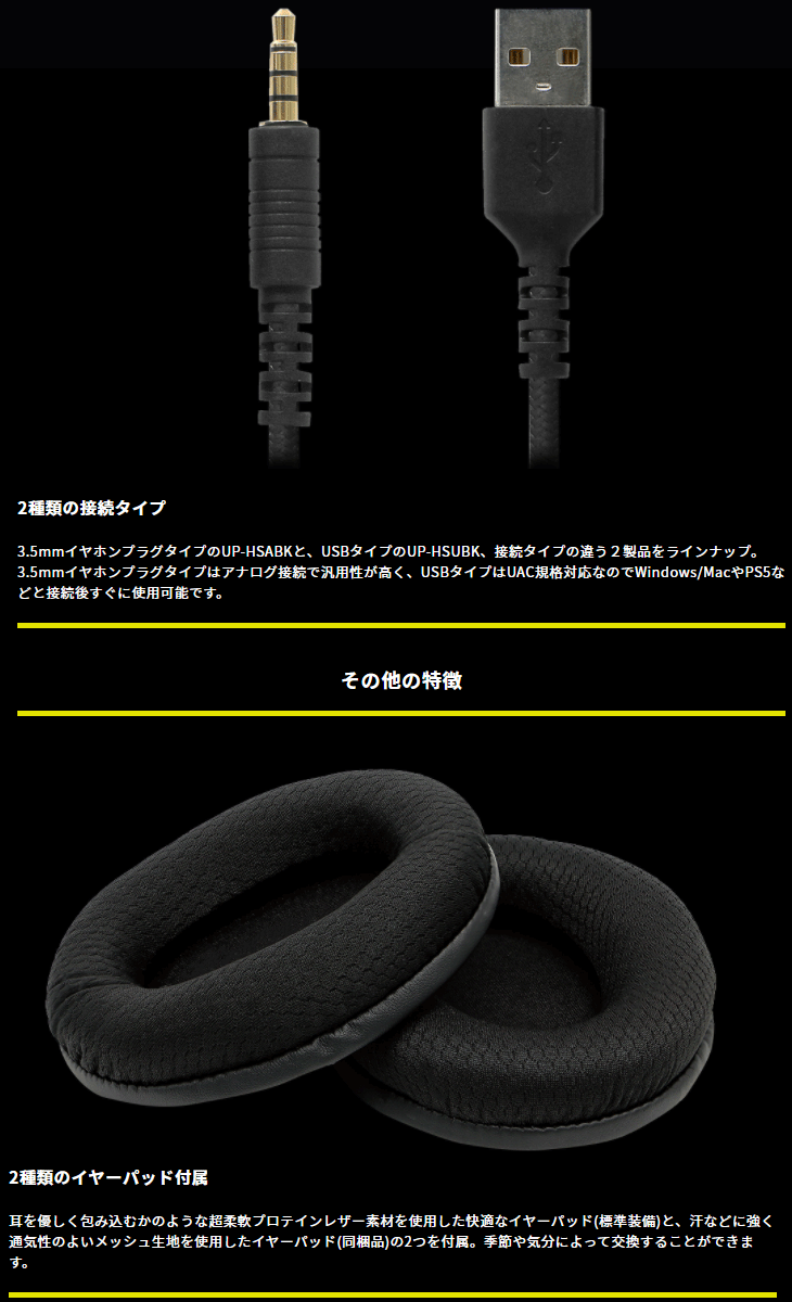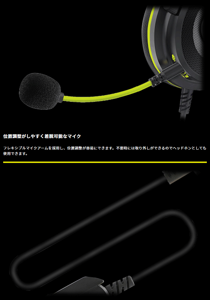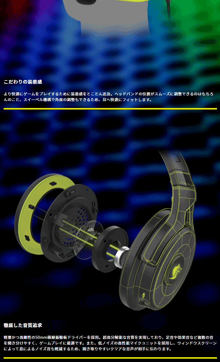 装着感と音質を追求した100%ゲームに没入できるゲーミングヘッドセット。接続端子:3.5mmイヤホンプラグ。ロゴの点灯なし