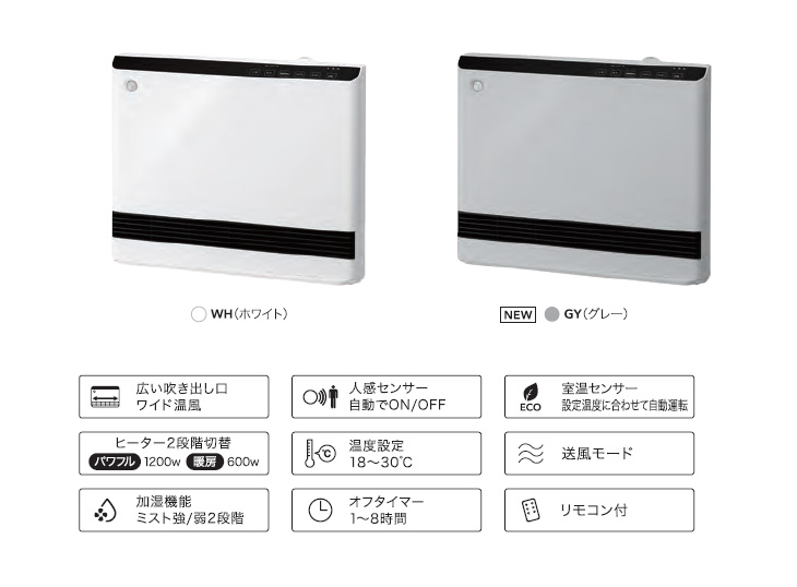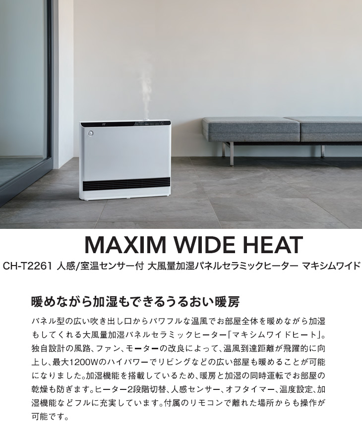 【オークション商品】CH-T2261(GY)加湿パネルセラミックヒーター マキシムワイドヒート グレー スペック情報