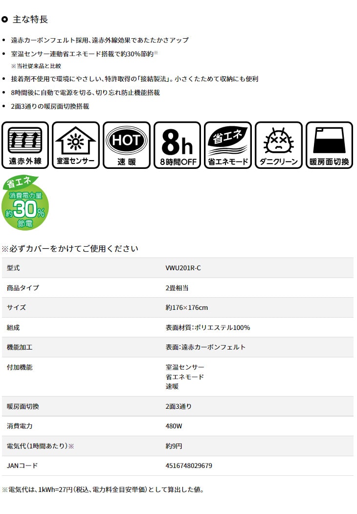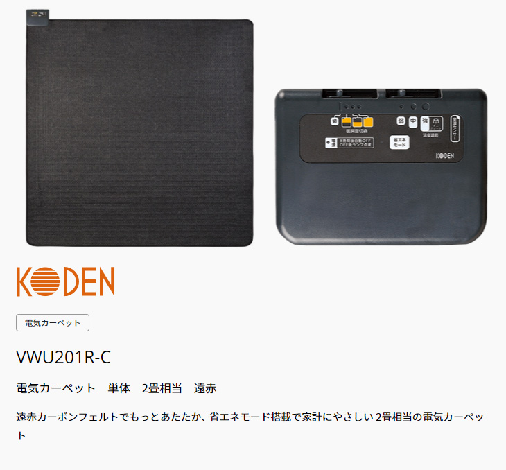 遠赤カーボンフェルトでもっとあたたか、 省エネモード搭載で家計にやさしい 2畳相当の電気カーペット