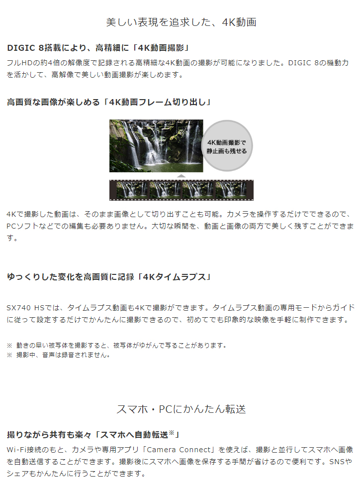 Wi-Fi接続のもと、カメラや専用アプリ「Camera Connect」を使えば、撮影と並行してスマホへ画像を自動送信することができます。撮影後にスマホへ画像を保存する手間が省けるので便利です。SNSやシェアもかんたんに行うことができます。