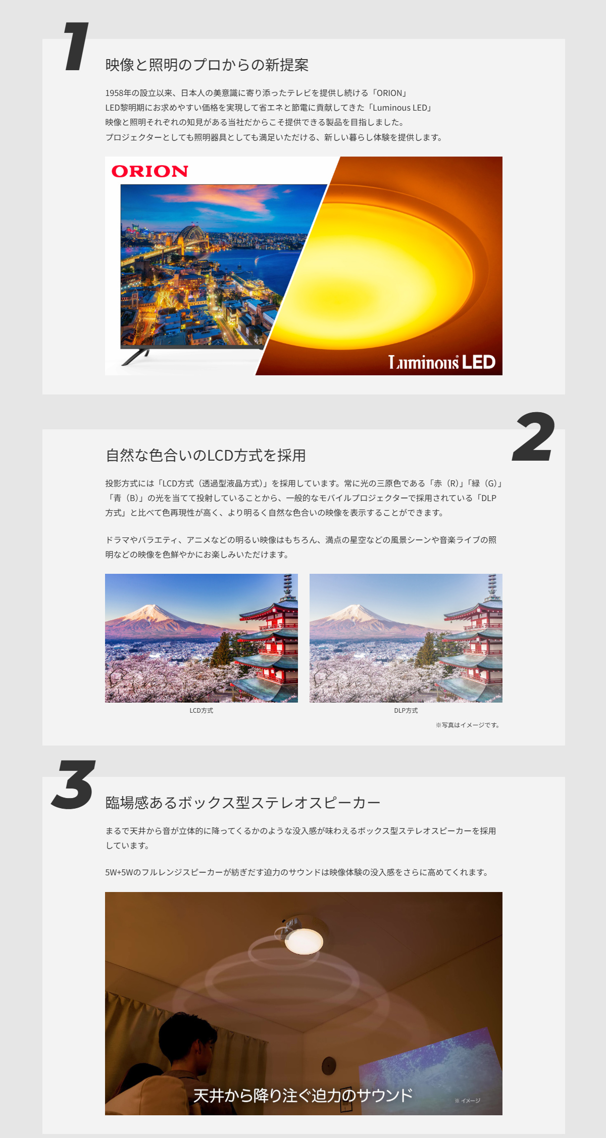 照明、映像、音響、1台3役の新体験。省スペースで大画面ホームシアター