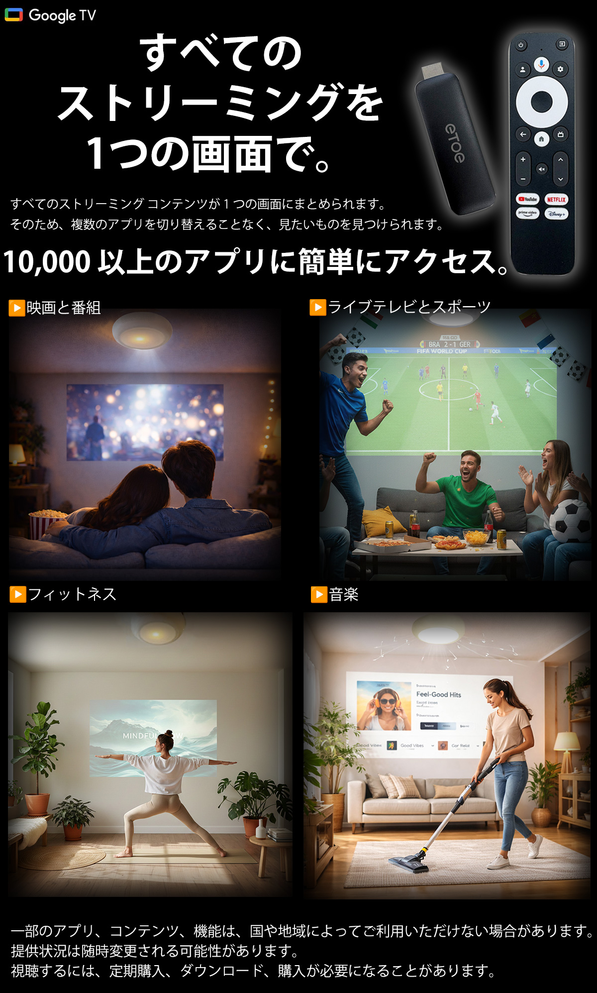 ■同梱のGoogle TV Stickでネット動画配信サービスがすぐに視聴可能