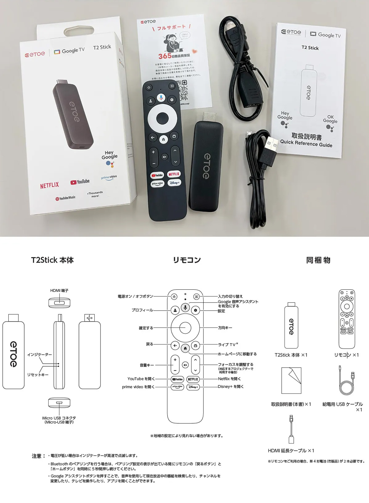 D2861-GTVは、etoe(エトエ)社製の「Google TV」を搭載したHDMIストリーミングスティックです。