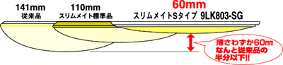 | 薄さわずか約60〜80mm前後、なんと従来品の半分以下の薄さです。とてもスリムに出来ているので天井がすっきりしてお部屋が広く感じられます。 |