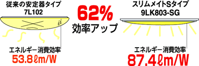 | 明るさバッチリ ほぼ同じ消費電力で明るさ約1.6倍 |
