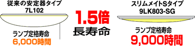 | ランプの寿命が従来品の約1.5倍と長寿命なので、ランプ代もお得です! |